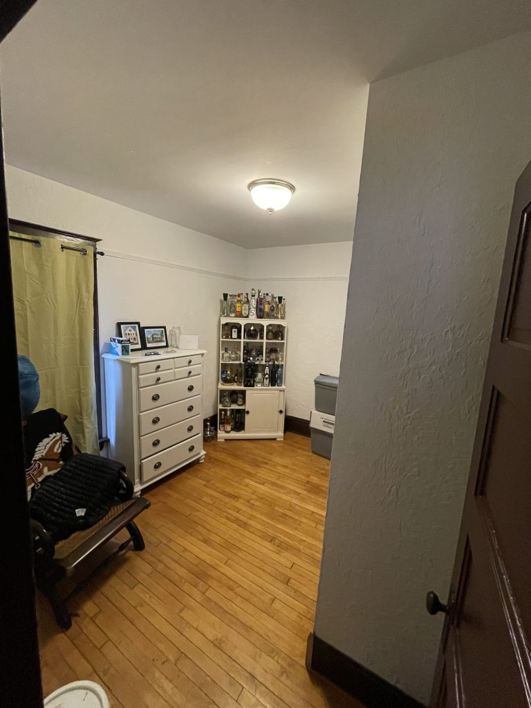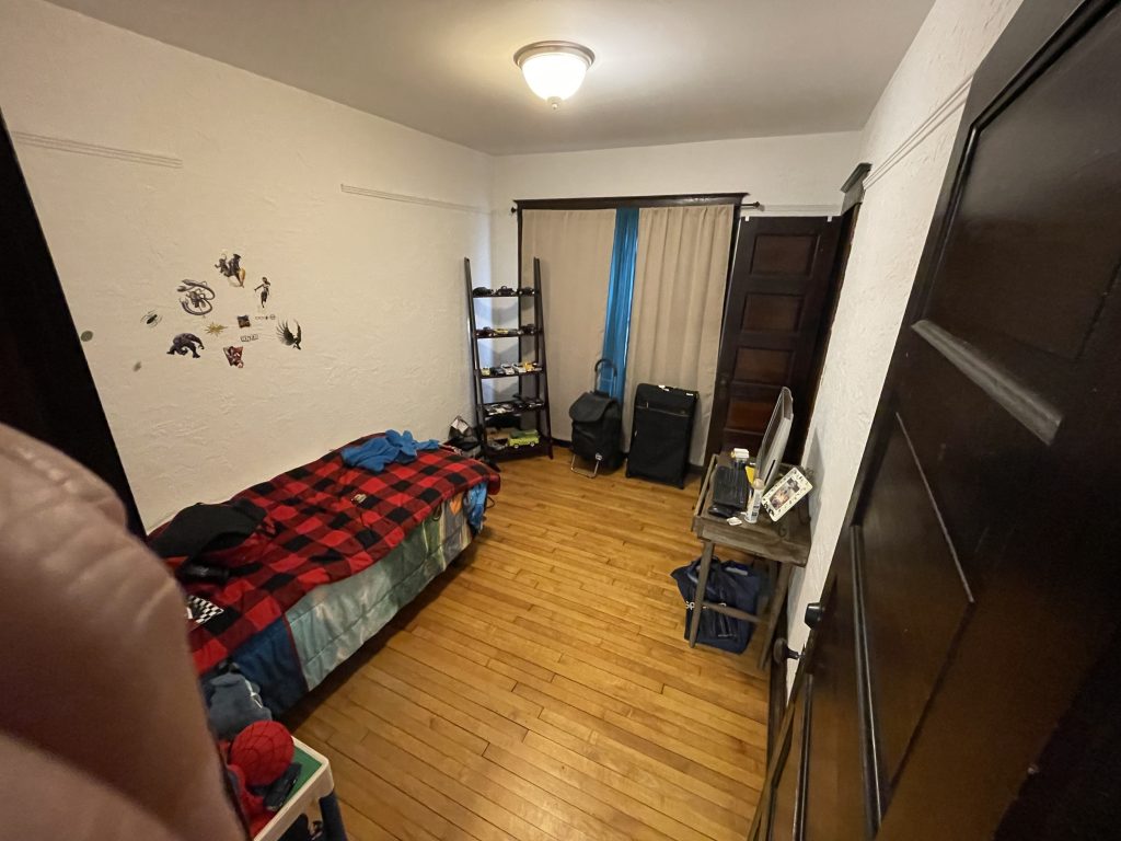 This is the middle bedroom, with large closet. Room size is 12’5″ x 9’4″. A queen bed would fit in this room, with room for a dresser.