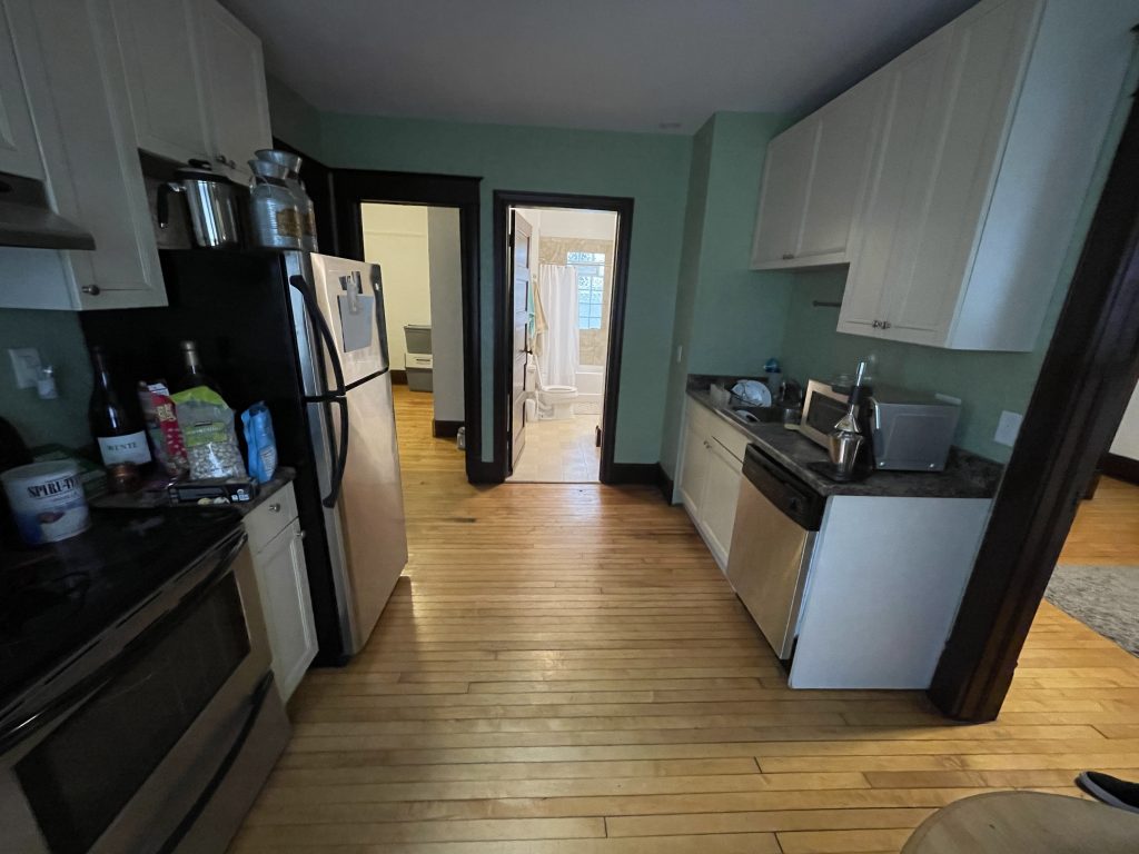 Beautiful large apartment with historic features of hardwood floors and Tiled bathroom.