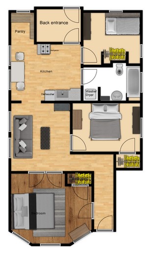 3 bedroom, 1 bathroom, in unit laundry, central air conditioning